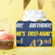Ce papier d’emballage comporte un message comme "FIRST-NAME’S 42nd BIRTHDAY!", avec le "42nd" ayant une apparence de couleur fausse/imitation or, et avec le nom et "BIRTHDAY" dans une police amusante et audacieuse. Le nom peut être customisé, et l'arrière - plan est de couleur bleue. Un papier comme celui-ci pourrait peut-être être utilisé pour envelopper les cadeaux d'anniversaire donnés à quelqu'un pour célébrer leur quarante-deuxième anniversaire. [~Z0000209]