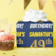 Ce design papier d’emballage comporte un message comme "49e anniversaire de SAMANTHA!", avec le "49e" ayant une apparence de couleur fausse/imitation or, et avec le nom et "anniversaire" dans une police amusante et audacieuse. Le nom peut être personnalisé, et l'arrière - plan est de couleur bleue. Un papier comme celui-ci pourrait peut-être être utilisé pour envelopper les cadeaux d'anniversaire donnés à quelqu'un pour célébrer leur quarante-neuvième anniversaire. [~Z0000209]