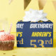Ce papier d’emballage comporte un message comme "ANDREW’S 53rd BIRTHDAY!", avec le "53rd" ayant une apparence de couleur fausse/imitation or, et avec le nom et "BIRTHDAY" dans une police amusante et audacieuse. Le nom est personnalisable, et l'arrière - plan est de couleur bleue. Un papier comme celui-ci pourrait peut-être être utilisé pour envelopper les cadeaux d'anniversaire donnés à quelqu'un pour célébrer son cinquante-troisième anniversaire. [~Z0000209]