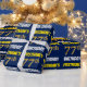 Papier Cadeau Bleu, Faux/Imitation Or, "77e ANNIVERSAIRE"