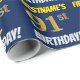 Les caractéristiques de conception ce de papier d'emballage un message aiment "le quatre-vingt-onzième ANNIVERSAIRE de FIRSTNAME ! ", avec "le quatre-vingt-onzième" ayant un faux/imitation or-comme l'aspect de couleur, et avec le nom et "l'ANNIVERSAIRE" dans un amusement, police audacieuse. Le nom est personnalisable, et l'arrière - plan est coloré bleu. Le papier d'emballage comme ceci a pu peut-être être employé en enveloppant des cadeaux d'anniversaire étant donnés à quelqu'un dans la célébration de leur quatre-vingt-dix premiers anniversaires. [~Z0000209]