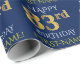 Ce design papier d'emballage comporte un message comme "HAPPY 83rd BANTHDAY", avec le "83rd" ayant une apparence fausse/imitation or. Il porte également un nom personnalisé et un arrière - plan de couleur bleue. Il pourrait peut-être être utilisé pour envelopper les cadeaux donnés pour le quatre-vingt-troisième anniversaire de quelqu’un. [~Z0000135]