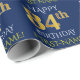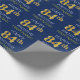 Ce design papier d'emballage comporte un message comme "HAPPY 84th BIRTHDAY", avec le "84th" ayant une apparence fausse/imitation or. Il porte également un nom personnalisé et un arrière - plan de couleur bleue. Il pourrait peut-être être utilisé pour envelopper les cadeaux donnés pour le quatre-vingt-quatrième anniversaire de quelqu’un. [~Z0000135]