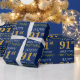 Ce design papier d'emballage comporte un message comme "HAPPY 91st BANTHDAY", avec le "91st" ayant une apparence fausse/imitation or. Il comporte également un nom personnalisé et un arrière - plan de couleur bleue. On pourrait peut-être l’utiliser pour envelopper les cadeaux donnés pour le quatre-vingt-dix et-unième anniversaire de quelqu’un. [~Z0000135]