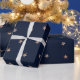Papier Cadeau Bleu foncé et rose gold pailleté étoiles ciel étoi