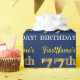 Ce design papier d’emballage comporte un message comme "77e anniversaire de prénom!", avec le "77e" ayant une apparence de couleur fausse/imitation or. Le nom peut être customisé, et l'arrière - plan est de couleur bleue. Il pourrait peut-être être utilisé pour envelopper les cadeaux donnés pour le soixante-dix-septième anniversaire de quelqu’un. [~Z0000181]