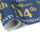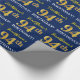 Ce design papier d’emballage comporte un message comme "94e anniversaire de FirstName!", le "94e" ayant une apparence de couleur fausse/imitation or. Le nom peut être customisé, et l'arrière - plan est de couleur bleue. Il pourrait peut-être être utilisé pour envelopper les cadeaux donnés pour le quatre-vingt-quatorzième anniversaire de quelqu’un. [~Z0000181]