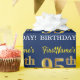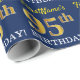 Ce design papier d’emballage comporte un message comme "95e anniversaire de FirstName!", le "95e" ayant une apparence de couleur fausse/imitation or. Le nom peut être personnalisé, et l'arrière - plan est de couleur bleue. Il pourrait peut-être être utilisé pour envelopper les cadeaux donnés pour le quatre-vingt-quinzième anniversaire de quelqu’un. [~Z0000181]