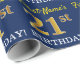 Ce design papier d’emballage comporte un message comme "21e anniversaire de prénom!", le "21e" ayant une apparence de couleur fausse/imitation or. Le nom peut être customisé, et l'arrière - plan est de couleur bleue. Il pourrait peut-être être utilisé pour envelopper les cadeaux donnés pour le vingt et unième anniversaire de quelqu’un. [~Z0000181]