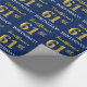 Ce design papier d’emballage comporte un message comme "61e ANNIVERSAIRE de FirstName!", le "61e" ayant une apparence de couleur fausse/imitation or. Le nom peut être customisé, et l'arrière - plan est de couleur bleue. Il pourrait peut-être être utilisé pour envelopper les cadeaux donnés pour le soixante et unième anniversaire de quelqu’un. [~Z0000181]
