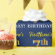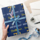 Ce design papier d’emballage comporte un message comme "FirstName’s 7th BIRTHDAY!", avec le "7th" ayant une apparence de couleur fausse/imitation or. Le nom peut être personnalisé, et l'arrière - plan est de couleur bleue. Il pourrait peut-être être utilisé pour envelopper les cadeaux donnés pour le septième anniversaire de quelqu’un. [~Z0000181]