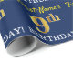 Papier Cadeau Bleu, Imitation Or Look "9e anniversaire"