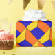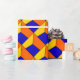 Formes bleues, jaunes et oranges de forme qui créent une illusion optique sur ce papier d'emballage d'amusement approprié à n'importe quelle occasion.