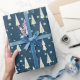 Papier Cadeau Bleu Moderne Rustique Pays Noël Arbres de Noël