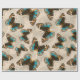 Papier Cadeau Bleu motif papillon Pansy sur blanc