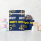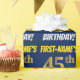 Ce modèle de papier d'emballage comporte un message comme "ANNIVERSAIRE DE [PRENOM] 45 ANS !" , avec le "45" ayant une apparence de couleur dorée fausse/imitée, et avec le nom et "ANNIVERSAIRE" dans une police amusante et grasse. Le nom est personnalisable et le fond est de couleur bleue. Du papier d'emballage comme celui-ci pourrait peut-être être utilisé lors de l'emballage de cadeaux d'anniversaire offerts à quelqu'un pour célébrer son quarante-cinquième anniversaire.