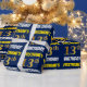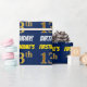 Ce modèle de papier d'emballage comporte un message comme "13e ANNIVERSAIRE DE PRENOM!", avec le "13e" ayant une apparence de couleur or imitation/faux, et avec le nom et "ANNIVERSAIRE" dans une police amusante et grasse. Le nom peut être personnalisé, et le fond est de couleur bleue. Du papier d'emballage comme celui-ci pourrait peut-être être utilisé lors de l'emballage de cadeaux d'anniversaire offerts à quelqu'un pour célébrer leur treizième anniversaire. [~Z0000209]