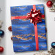Papier Cadeau Bleu Or Village de Noël hivernal personnalisé