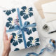 Papier Cadeau Bleu prussien sur Hibiscus blanc