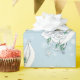 Un dragon blanc se trouve au milieu de roses blanches et de flocons de neige sur fond de bleu clair
