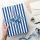 Papier d'emballage simple bleu et blanc rayé nautique.
