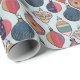 Ce papier d'emballage rétro et élégant de Noël présente une illustration dessinée à la main d'ornements vintage de Noël à l'encre noire contre un élégant arrière - plan bleu d'hiver.