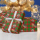 Une adorable aquarelle illustration d'un Bloodhound, se marie avec un joyeux arrière - plan à motifs rouge et vert, et le chien porte une écharpe rouge et un casquette de elfe adorable.