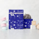 Cet élégant papier d'emballage de vacances présente un renne blanc silhoué, des flocons de neige blancs et un joli design tourbillon argenté sur un arrière - plan de nuit bleu foncé. Le texte en blanc dit "La Merveille de Noël". Belle, festive et unique !