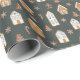 Whimsical Christmas theme wrapping paper featuring illustration of gingerbread houses with blue accent.