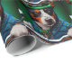 Un ami en fureur derrière les guidons d'une moto verte brillante, portant une tenue verte de la Saint Patrick qui fait tourner la tête. Le chien est habillé d'un ensemble festif, avec une cravate arc-en-ciel verte et un chapeau haut assorti qui se trouve doucement au-dessus de la tête. Le costume présente des motifs complexes de shamrocks et de leprechauns, ce qui indique clairement que ce chien est prêt à célébrer la Saint Patrick avec style.