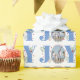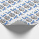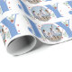 Joie bleue avec baies Noël photo de vacances Papier à envelopper. Il présente un motif du mot "JOY" en bleu avec des baies rouges et de la verdure tandis que, au lieu de la lettre "O", il y a votre photo. Personnalisez avec votre propre photo et texte.