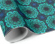 This striking wrapping paper features a bold blue kaleidoscope fractal pattern arranged in a seamless geometric repeat. Intricate symmetrical shapes and layered textures create a dramatic design that blends abstract symmetry, psychedelic color, and modern digital art into a vibrant decorative pattern.