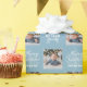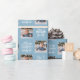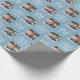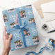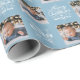 Christmas gift wrapping paper feature modern calligraphy merry Christmas and happy new year, family name typography, with personalized two photos in blue and white.