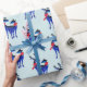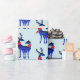 Envelopper le papier avec un arrière - plan bleu vert clair. Illustré par une paire de cerfs bleus scandinaves portant des foulards rouges. Avec des marquages décoratifs sur le corps. Un design motif répétitif.