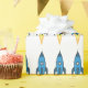 Papier Cadeau Blue Retro Rocket Ship Outer Space Birthday Boy
