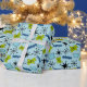 Papier Cadeau Blues atomiques et vert sur bleu à moyenne échelle