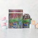 Paysage aquarelle avec bateau beau dessin. Rose, bleu, vert - couleurs du matin - beau tableau romantique. Toutes les occasions emballer du papier.