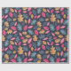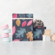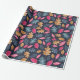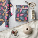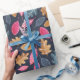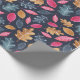 Woodland Winter Watercolor Feuilles papier d'emballage de Noël de Ricaso - avec une pléthore de feuilles en rose, or et vert sur un arrière - plan bleu foncé - un merveilleux papier d'emballage cadeau d'hiver de bois
