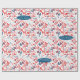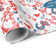 Ajoutez un message d'accueil et un nom ou un autre texte à cet emballage cadeau attrayant qui présente des graphiques d'art populaire de style scandinave de cerfs de bois, oiseaux et fleurs d'hiver dans des tons modernes de rouge et bleu avec des touches de blanc. art original de LeahG.