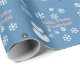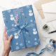 A Slice of Life and Delight présente le papier d'emballage Hello, Winter Wonderland avec un bonhomme de neige décoré de flocons de neige blancs, d'écriture rose et d'un fond bleu. Le bonhomme de neige a aussi un casquette bleu et une écharpe.