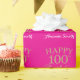 Joyeux 100e anniversaire Parties scintillant d'or et papier d'enveloppement rose chaud avec nom personnalisé. Pour plus de personnalisation, cliquez sur le bouton "Customiser" et utilisez notre outil de conception pour modifier ce modèle.