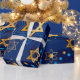 Bonne Hanoukka, étoile de David, Menorah, papier d'emballage motif bleu.