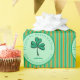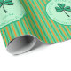 Cette bonne chance "Happy St. Patrick's Day" papier d'emballage en trèfle avec un motif à rayures fines vert et orange avec un trèfle vert de chance dessiné à la main et 2 textes personnalisés.