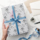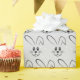 Mignonne face lapin doodle avec de grandes dents sur un motif pois blanc et gris.