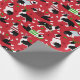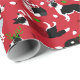 Chiens de Collie à la frontière mignonne dans des tenues de vacances festives portant chapeaux de Père Noël, bois, cordes de lumières et pois de polka et chandails de Jacquard sur un arrière - plan rouge avec des ornements épars.