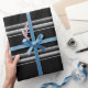 Papier d'emballage noir avec lignes métalliques 3D horizontales traversant un arrière - plan noir pur. © Matin 6