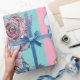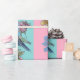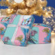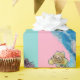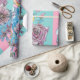 Blue Budgie Art Rose sur Pink et Mint Fleurs vertes Aquarelle Papier à envelopper. Conçu par moi à partir d'une de mes aquarelles originales. Un cadeau élégant qui fera sourire n'importe qui.