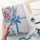 Papier Cadeau Bougie bleue Fleurs d'art Roses Aquarelle