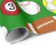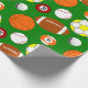 Ce papier d'emballage a un design novateur de différentes boules de sport, y compris des boules de basket, de baseball, de billard, de football, de football et de golf.