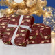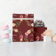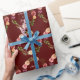 Beau papier d'emballage mariage floral rouge bordeaux avec un magnifique motif de couronne de fleurs de pivoine aquarelle avec les noms du couple personnalisés dans les cercles. Un élégant papier d'emballage de mariage pour une occasion d'automne.